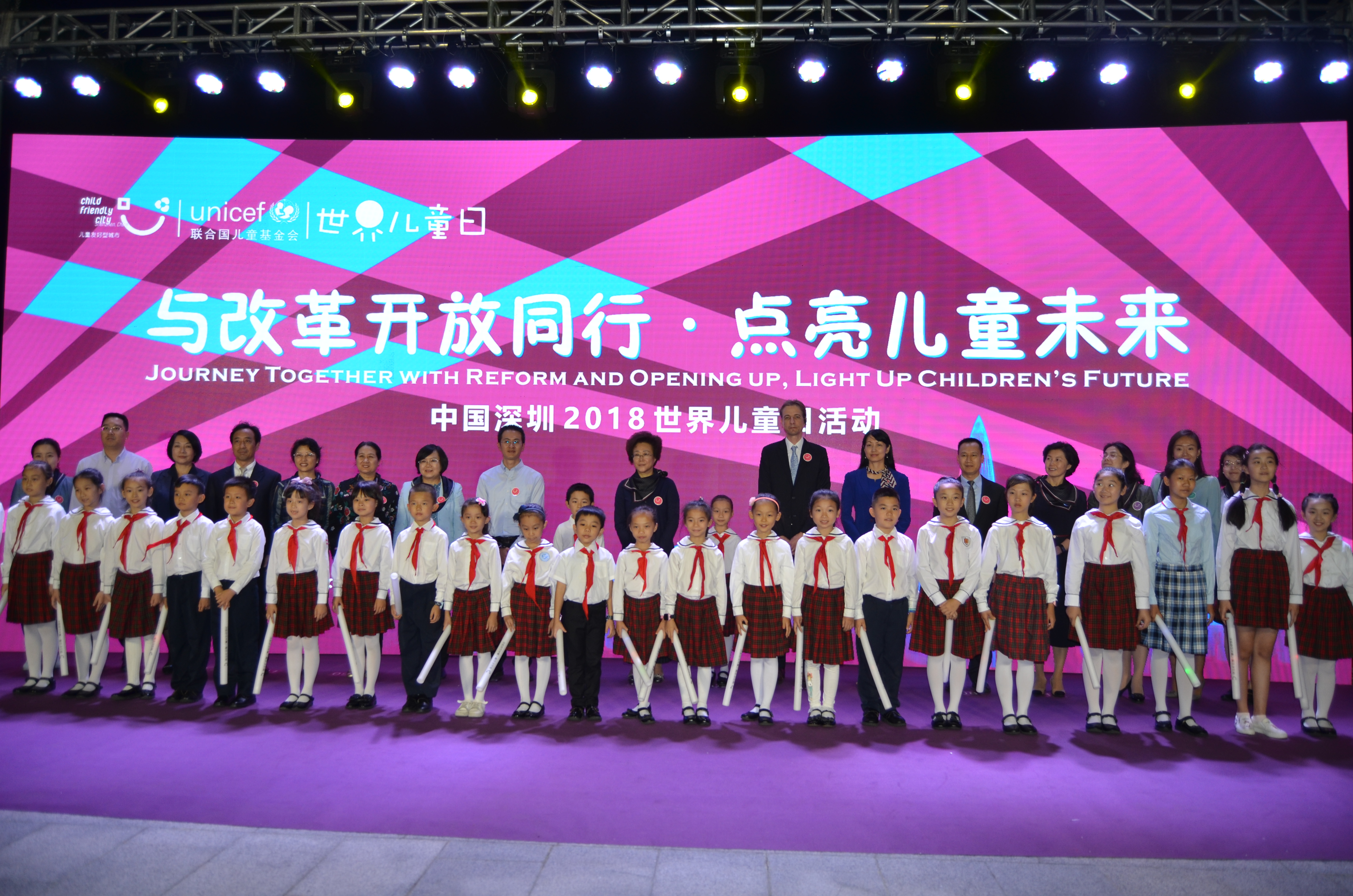 本次活動由深圳市婦女兒童工作委員會、深圳市婦女聯合會和南山區婦女兒童工作委員會攜手聯合國兒童基金會駐華辦事處共同舉辦。深圳市副市長、市婦兒工委主任吳以環,深圳市政府副秘書長、市婦兒工委副主任劉佳晨,深圳市婦聯主席、市婦兒工委副主任馬宏,南山區委副書記、區長曾湃及南山幾套班子領導、兒童代表出席活動。聯合國兒基會駐華辦事處彭文儒先生、中國國際發展知識中心王雄軍一行專程來到深圳共同慶賀節日。